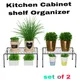 These set of 2 kitchen cabinet Helper shelf will help your solve the messy counter, cabinet, and pantry. The cabinet wire shelf rack suitable for different scenarios usage, like living room, bathroom, kitchen and pantry. Great for organizing plates, pots, pans, cups & coffee mugs. This set of 2 helper shelves will double your space! Stack extra tiers of dishes, canned goods or containers in kitchen cabinets with this versatile shelf